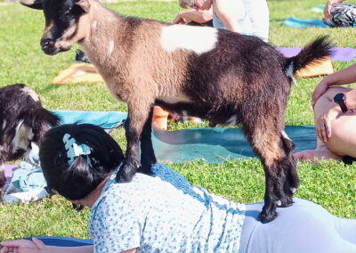 Throughout the year, we offer educational classes on subjects related to urban homesteading like gardening, backyard chickens, bee-keeping, food preserving and more. You can read more about these topics at the Wabash Almanac blog. Each Spring and Fall we host a festival with local vendors, activities for kids and adults. We also hold occasional Goat Yoga classes!